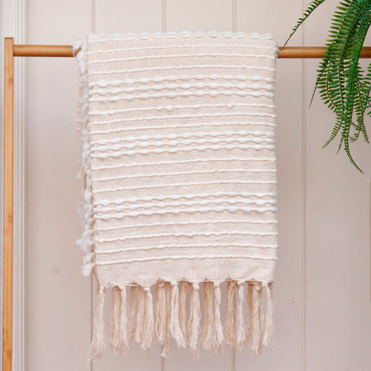 Ivory Textured Fringe Throw