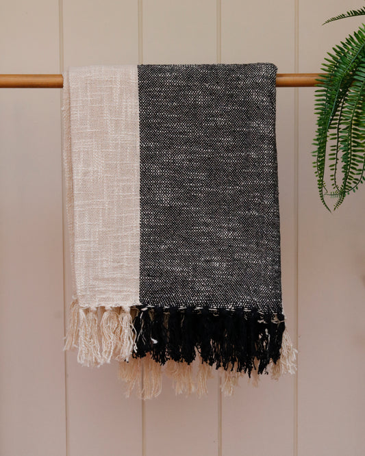 Half & Half Black And Ivory Throw