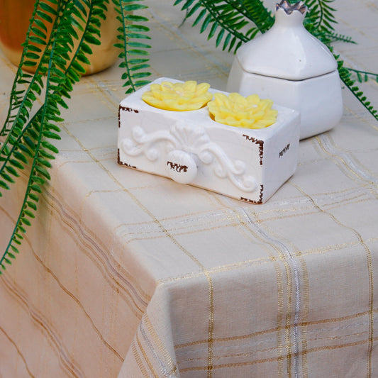 Ivory Gold Grid Tablecloth
