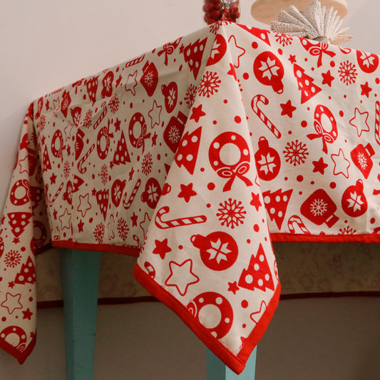 Red Snowflake Cotton Tablecloth – Festive Dining Decor