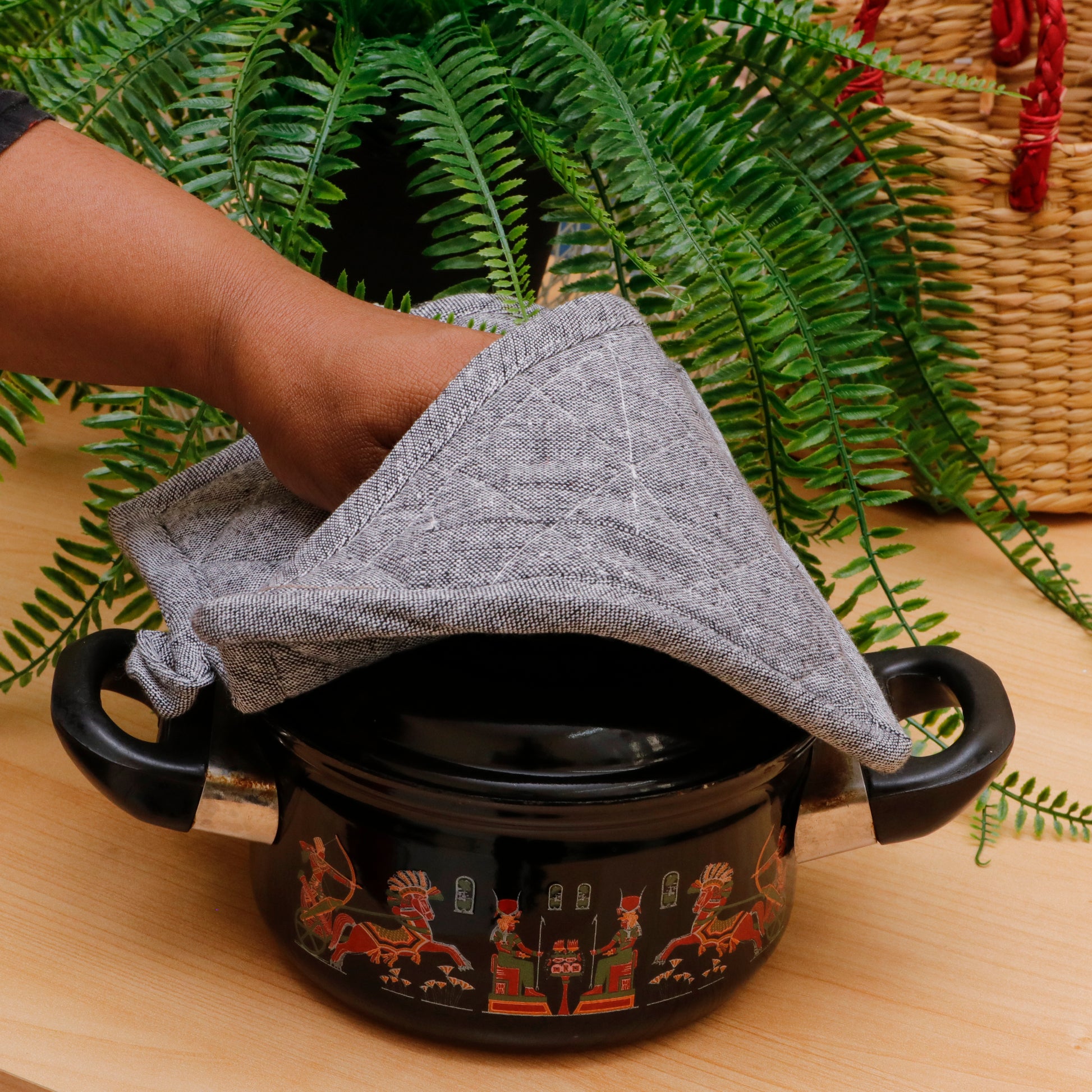 Whether used as a pot holder, a base for serving hot pans, or as a soft organizer for pouches and cutlery, this versatile piece is as handy as it is handsome.